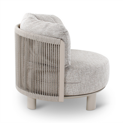 Nimbo is voorzien van een topo kleurig aluminium frame, een stone kleurige weving met zachte kussens. Het resultaat is een stijlvolle en comfortabele loungestoel die zowel modern als tijdloos oogt.