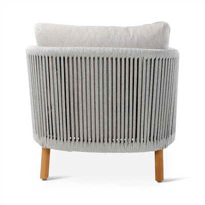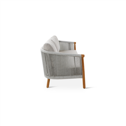 De Romeo collectie biedt een complete outdoor ervaring met eettafels, lounge zetels, armstoelen en salontafels. De tafels hebben duurzame sintered stone bladen en teak poten, terwijl de stoelen en lounge meubels eveneens teak poten combineren met een grijze weving en comfortabele kussens in cloud kleur. Het resultaat is een warme, natuurlijke en tijdloze uitstraling die comfort en stijl perfect verenigt.